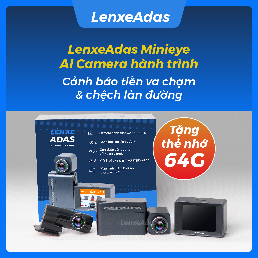 Sản phẩm: LenxeAdas Minieye AI Camera hành trình 4k trước sau Sony, ADAS cảnh báo tiền va chạm, chệch làn đường, màn 3D thực tế giao thông