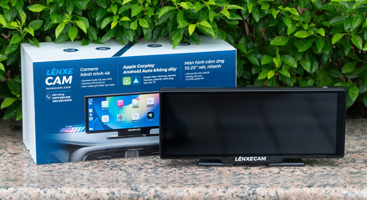 Màn Lenxecam là Camera hành trình 4k trước sau, camer sau Full HD tích hợp làm camera lùi. Có Carplay, Android Auto không dây và cắm dây (thích hợp với iPhone, máy điện thoại hệ điều hành Android). Cài đặt bản đồ cảnh báo tốc độ, cam phạt nguội như Google map, Vietmap, Gofa, Navitel... Xem youtube 2K, nghe nhạc qua loa xe (với bluetooth hoặc AUX 3.5) với MP3 Zing, Nhạc của tui...Màn hình lớn 10.26 inch, sắc nét, phân giải 2K